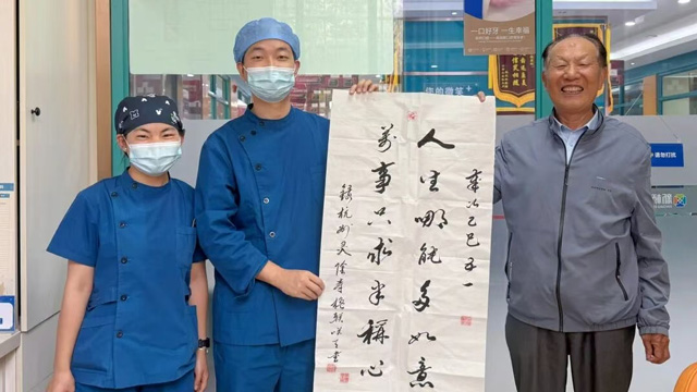【新桥口腔西宁院区】八旬顾客李先生对戴牙感到满意,为种植专科黄清川医生赠送自写的书法,字里行间都承载着最珍贵的肯定。