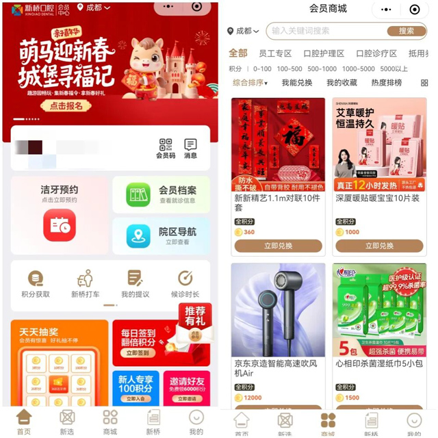 作为医院面向患者的线上服务延伸,新桥会员中心小程序集洁牙预约、医生排班查询、院区导航及术后医嘱等多项便捷功能于一体,成为患者的随身口腔健康管家。同时,会员积分换好礼等特色服务,更让长期健康管理更具获得感,真正实现“离院不离医”的全周期关怀。截至目前,新桥会员中心注册用户已突破33.55万人,日均点击量破8万。